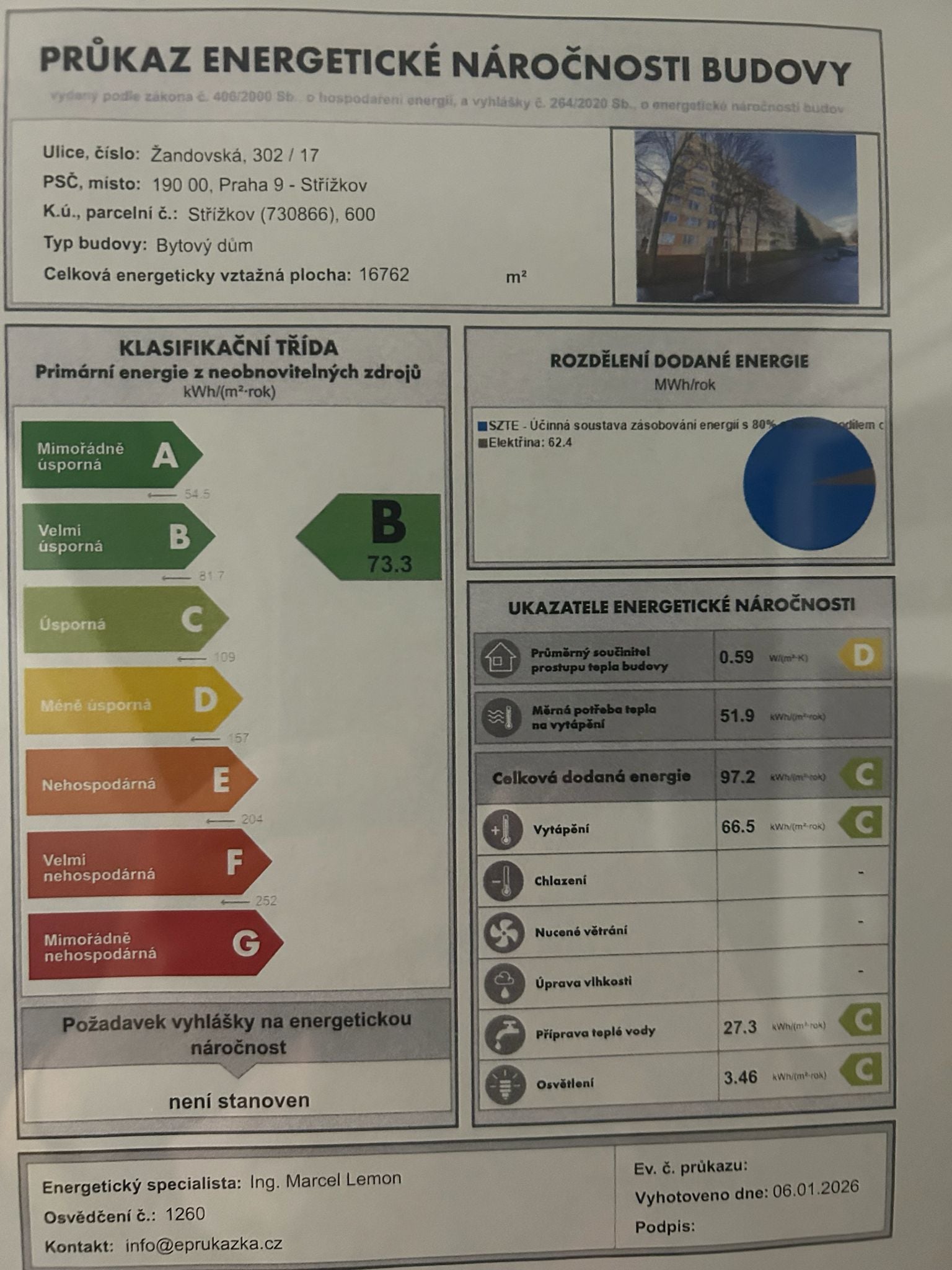 | Ukazatel ENB | 73 kWh/m2 za rok |